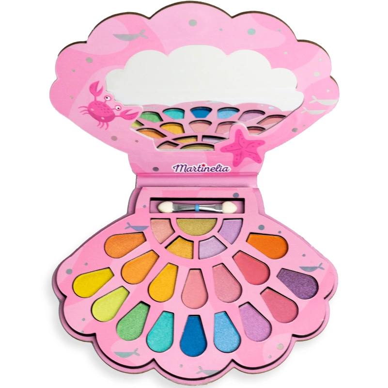 Martinelia Let's Be Mermaids Briefcase Eyeshadow Palette er en super sød øjenskygge palette inspireret af det dybblå ocean og havfruernes eventyrlige verden. Paletten er formet som en elegant muslingeskal, der straks vækker minder om skjulte skatte på, Martinelia Let's Be Mermaids Briefcase Eyeshadow Palette.