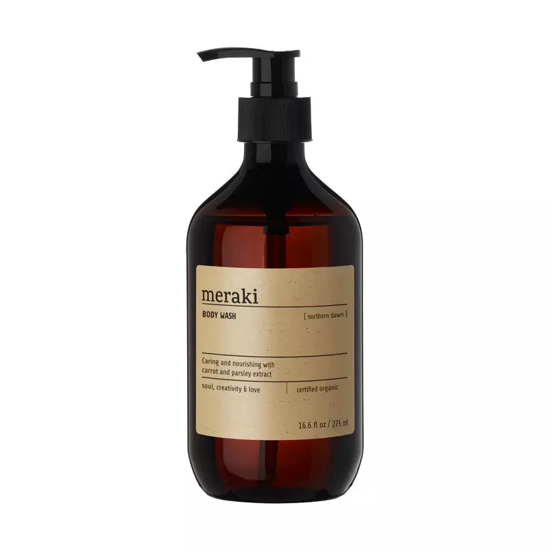 Meraki Body Wash Northern Dawn er en skøn velduftende økologisk certificeret body wash fra Meraki, hvor du får en skøn sæbe til kroppen, i emballage som du gerne vil have stående fremme. Med dens smukke emballage, vil flaske stå flot i brusenichen og tilf, Meraki Body Wash Northern Dawn 275 ml.