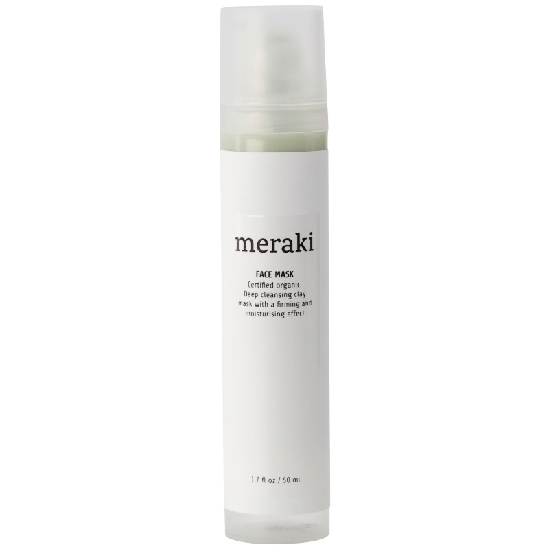 Meraki Face Mask er en lækker cremet lermaske, som er velegnet til alle hudtyper. Masken renser huden i dybden, uden at virke udtørrende, og den cremede konsistens absorberer urenheder fra huden. Den er beriget med Earth Marine Water, som tilfører mineral, Meraki Face Mask 50 ml.