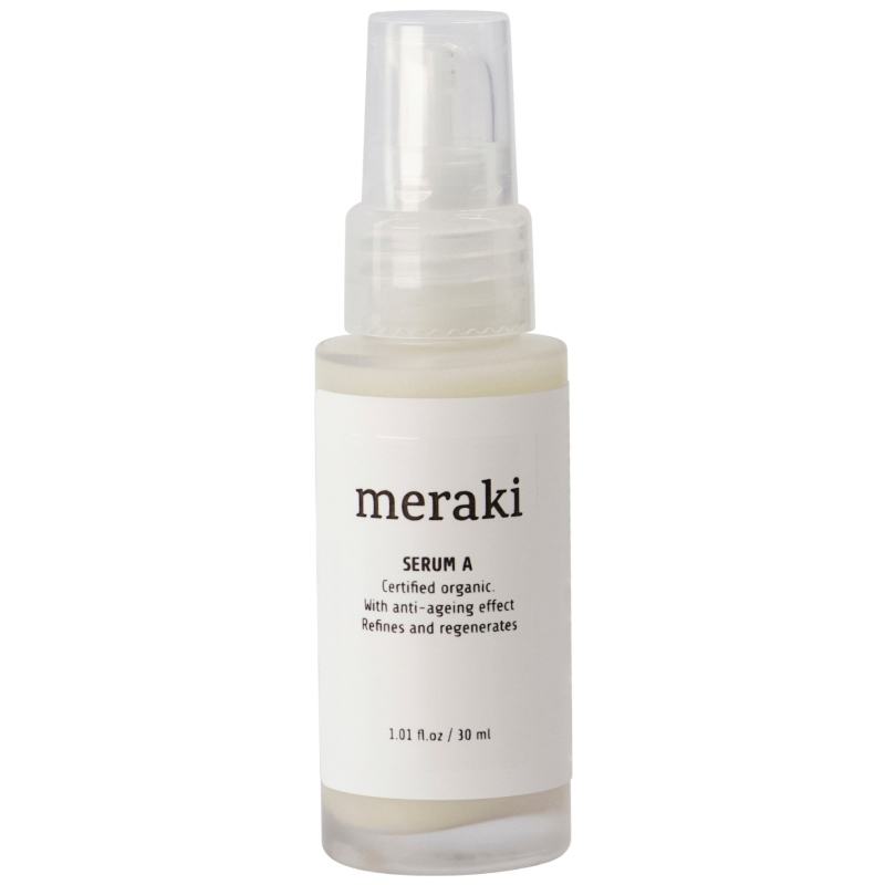 Meraki Serum A er et super lækkert serum, som kan bruges dagligt. Serummet er parfumefrit, og virker opstrammede på huden i ansigtet og på halsen, men er så mildt at det kan bruges omkring øjnene også. Serummet har en anti-age virkning, og indholdet af hy, Meraki Serum A 30 ml.