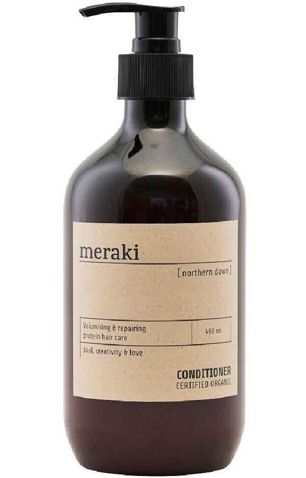 Meraki volumising & repairing protein hair care northern dawn conditioner 490ml Meraki Conditioner Northern Dawn er en super skøn og plejende balsam, til dig med en sart og sensitiv hud og hovedbund. Denne rige conditioner er særligt velegnet til d