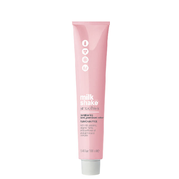 Milk_shake smoothies conditioning semi permanent colour 6/6N dark blond 100ml Milk_Shake Semi permanent farve er en mild, nærende toning af mælk, honning og frugt. Fri for ammoniak og giver en fantastisk glans og et livligt resultat med markante duf