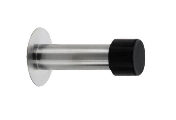 Millex dørstop med gummibuffer 78mm Solid dørstopper i rustfri stål, der skal monteres på væggen. Der medfølger montagematerialer til ophæng på væggen.