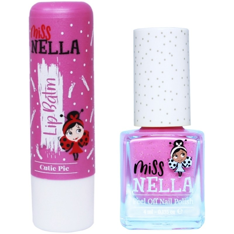 Miss NELLA Cutie Pie Set er en utrolig fin sampak til den pynte-glade pige. Denne sampak indeholder nemlig en læbepomade, der både plejer, beroliger og fugter læberne. Ikke nok med at de efterlades bløde og behagelige, så bliver de også tilført lidt farve, Miss NELLA Cutie Pie Set.