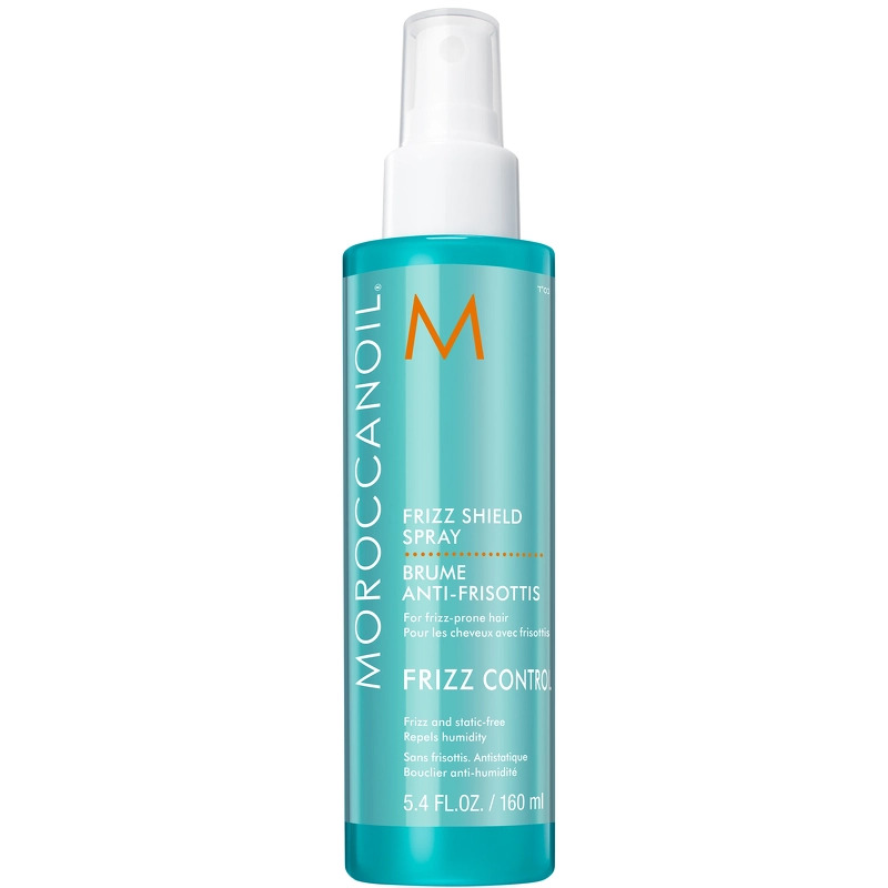 Moroccanoil Frizz Shield Spray er en anti-frizz spray, velegnet til kruset og uregerligt hår. Den lette, varmeaktiverende formel dækker hvert enkelt hårstrå med en beskyttende skjold, der effektivt afviser fugt og holder op til 90% af luftfugtigheden på a, Moroccanoil Frizz Shield Spray 160 ml.