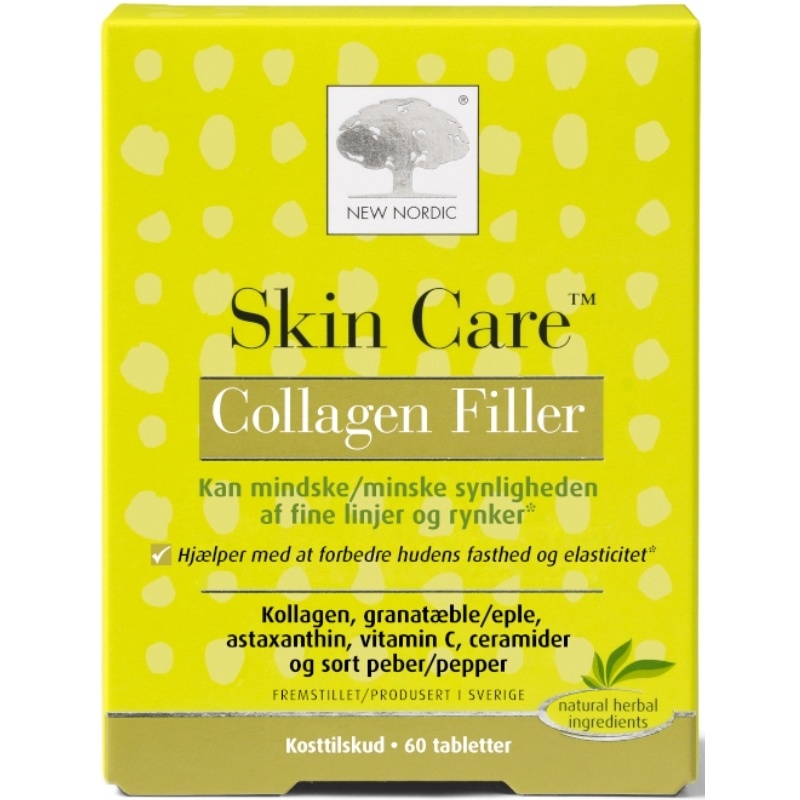 New Nordic Skin Care Collagen Filler 60 Pieces er skønhed indefra, i form af kosttilskud. Skin Care™ Collagen Filler tabletten mindsker synligheden af fine linjer og rynker. Tabletten hjælper også med at forbedre hudens fasthed og elasticitet. Skin Care, New Nordic Skin Care Collagen Filler 60 Pieces.