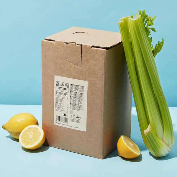 Økologisk bladselleri saft med citron Bag-in-Box 3 l. Der intet bedre end et friskpresset glas uimodståelig lækker sellerjuice på en varm sommerdag. Grøntsagssaft er ikke umiddelbart for alle, men for dem, der er til det, er det en sand delikatesse.. Sell, Økologisk bladselleri saft med citron Bag-in-Box 3 l.