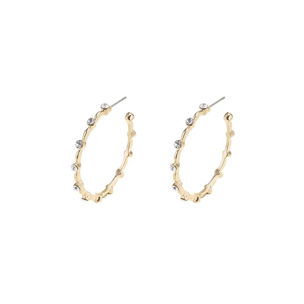 Tilføj et strejf af elegance til din stil med denne guldfarvede ørering, perfekt til både hverdagsbrug og festlige lejligheder. Det tidløse design giver et klassisk udtryk med en moderne kant, som gør øreringen til en uun, Øreringe, guldfarvet med smukke, klare sten.