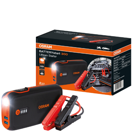 Mærke: Osram, Type: Jumpstarter, Model: BATTERYstart 300, USB-udgange: 2, Batterikapacitet: 13000mAh, Gtin: 4052899620483,, Osram BATTERYstart 300 Jumpstarter – 13000mAh.