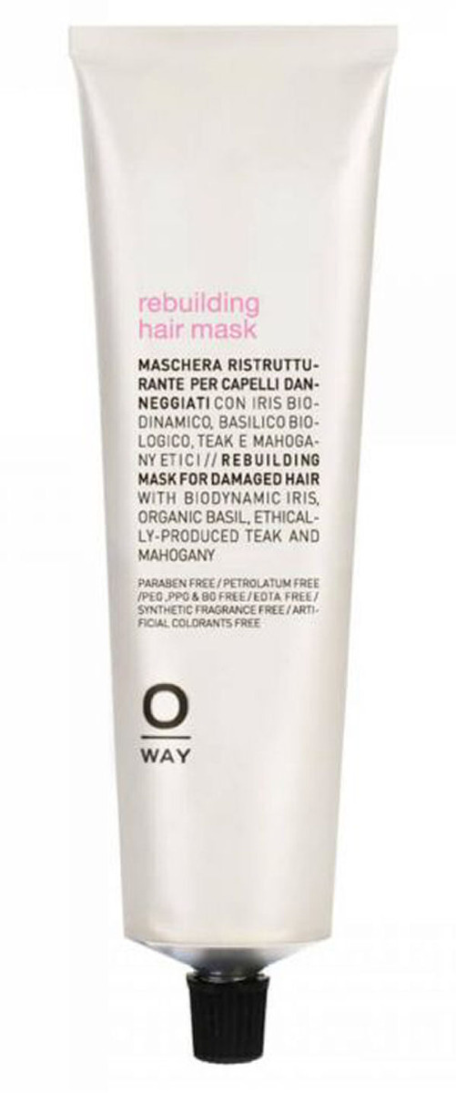 Oway rebuilding hair mask 150ml Denne hårmaske genopbygger hårstråene i dybden og er perfekt til hår, der er ødelagt fx. på grund af hårfarvning eller andre kemiske behandlinger. Håret vil efterlades sundt og stærkt med fornyet glans.