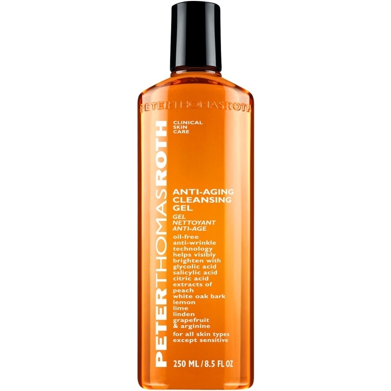 Peter Thomas Roth Anti-Aging Cleansing Gel er en let eksfolierende rensegel, som nemt og effektivt fjerner make-up og urenheder. Derudover er den med til at øge cellefornyelsen, rense porerne i dybeden samt reducere synligheden af fine linjer og rynker. D, Peter Thomas Roth Anti-Aging Cleansing Gel 250 ml.
