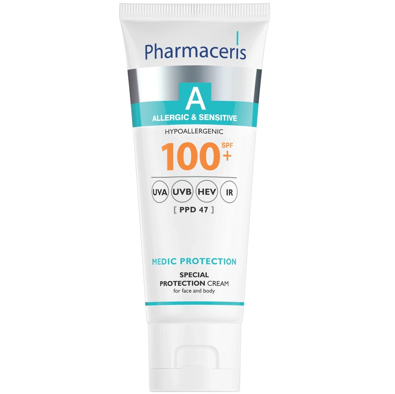 Pharmaceris A Medic Protection SPF 100+ er intensiv solbeskyttelse til ansigt og krop, som er udviklet specielt til hud, der kræver særlig opmærksomhed og behandling. Den er velegnet til personer med intolerance over for forskellige typer solstråling, som, Pharmaceris A Medic Protection SPF 100+ – 75 ml.