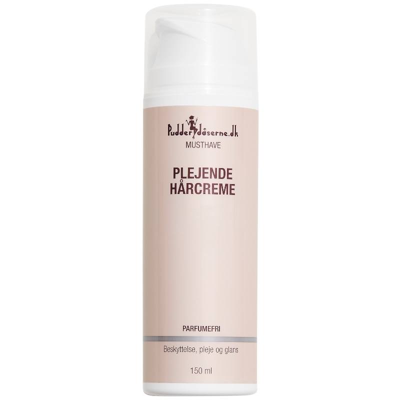 Pudderdåserne Plejende Hårcreme er en skøn, parfumefri leave-in creme, der kan bruges til alle, der ønsker at give sit hår rig og nærende pleje. Cremen er med til synligt at forbedre hårets udseende og holder det samtidig godt beskyttet mod skader og udtø, Pudderdåserne Plejende Hårcreme 150 ml.
