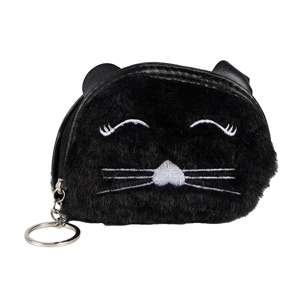 Sød sort pung i blødt syntetisk materiale med kattemotiv og lynlås – perfekt som gave eller til opbevaring af småting.