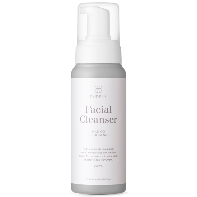 Purely Professional Facial Cleanser 1 er en mild rens til ansigtet, der kan anvendes af alle hudtyper. Den renser skånsomt og effektivt huden fri for rester af makeup og snavs uden at udtørre den. Formlen er skumbaseret og indeholder kamille, der virker b, Purely Professional Facial Cleanser 1 – 250 ml.