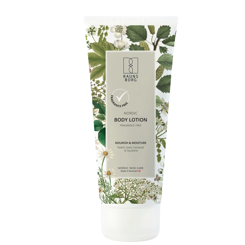 Raunsborg Body Lotion Fragrance Free er en nærende bodylotion, som modvirker tør hud. En bodylotion, som tilfører dybdevirkende fugtighed og efterlader huden blød, smidig og frisk. Olie fra radisefrø får cremen til at trænge hurtigt ind uden at fedte. Men, Raunsborg Body Lotion, Fragrance Free 200 ml.