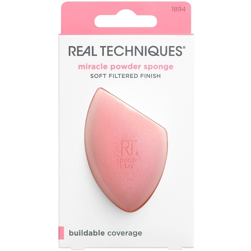 Real Techniques Miracle Powder Sponge er en multifunktionel 3-i-1 svamp, som har afrundede sider til at blende større områder af ansigtet med en duppende bevægelse. Den smallere spids gør det muligt at skabe fine detaljer, mens den flade side er perfekt b, Real Techniques Miracle Powder Sponge.