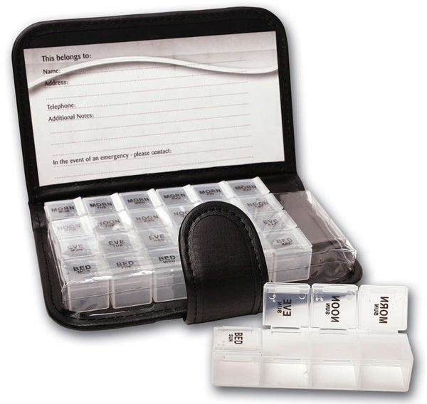Funktionelt etui som er nemt og have med på rejser.. 28 rum. Mål: 20cm x 14cm x 3cm, Rejseetui til tabletter.