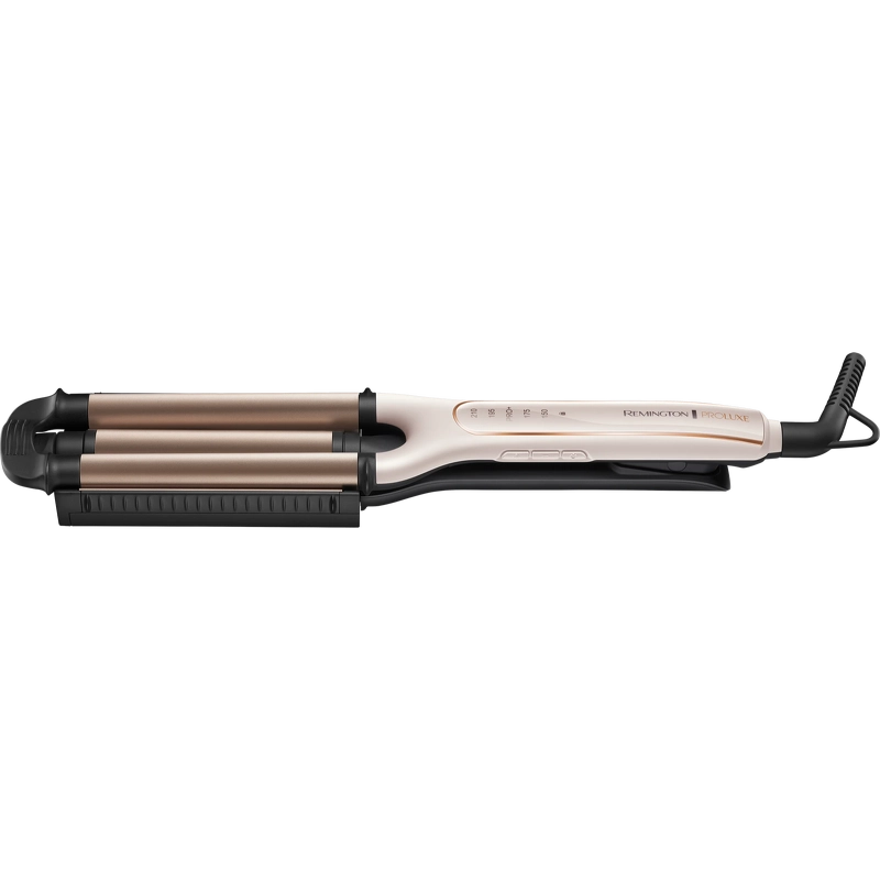 Remington PROluxe 4-in-1 Adjustable Waver – CI91AW er et bølgejern, der med sin innovative og justerbare tromle giver mulighed for at skabe ikke bare én, men hele fire forskellige slags bølger. Uanset om man er til dybe og definerede bølger, forførende ha, Remington PROluxe 4-in-1 Adjustable Waver – CI91AW.