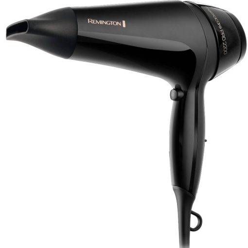 Remington Thermacare PRO 2200 er en hårtørrer, der tørrer dit hår hurtigt med mindre varme, og giver dig den ønskede beskyttelse, uden at du behøver at gå på kompromis med stilen. Denne kraftfulde men blide hårtørrer har en effekt på 2200W men med mindre, Remington Thermacare PRO 2200 – D5710.