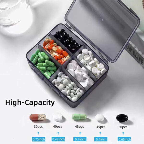 Denne pilleæske kan bruges til mange størrelser piller, da skillerum kan flyttes rundt.. Farve. Sort. Mål. 13.3×10.6x4cm, Rummelig pilleæske.