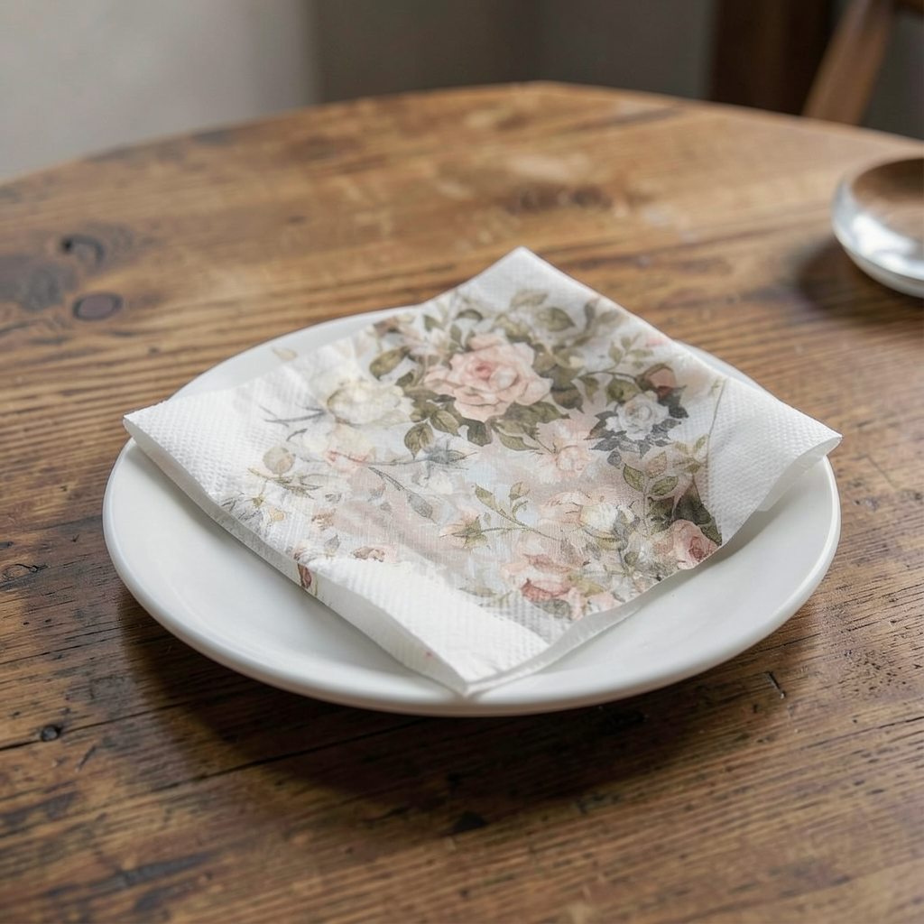 Servietter i Papir – Sæt med 20 stk., Blå/Beige med Blomster (33×33 cm)