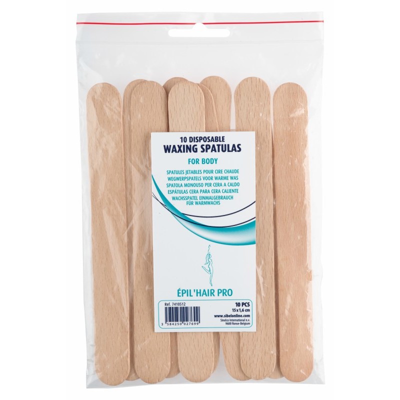 Sibel Waxing Spatulas For Body er træspatler, som bruges i forbindelse med flydende voks. Med disse spatler kan du nemt fordele voksen på huden, og derved få et glat og jævnt lag. De måler 15 x 1,9 cm og er derfor velegnet at bruge på større områder som b, Sibel Voks Spatler til Kroppen 10 Stk (U).