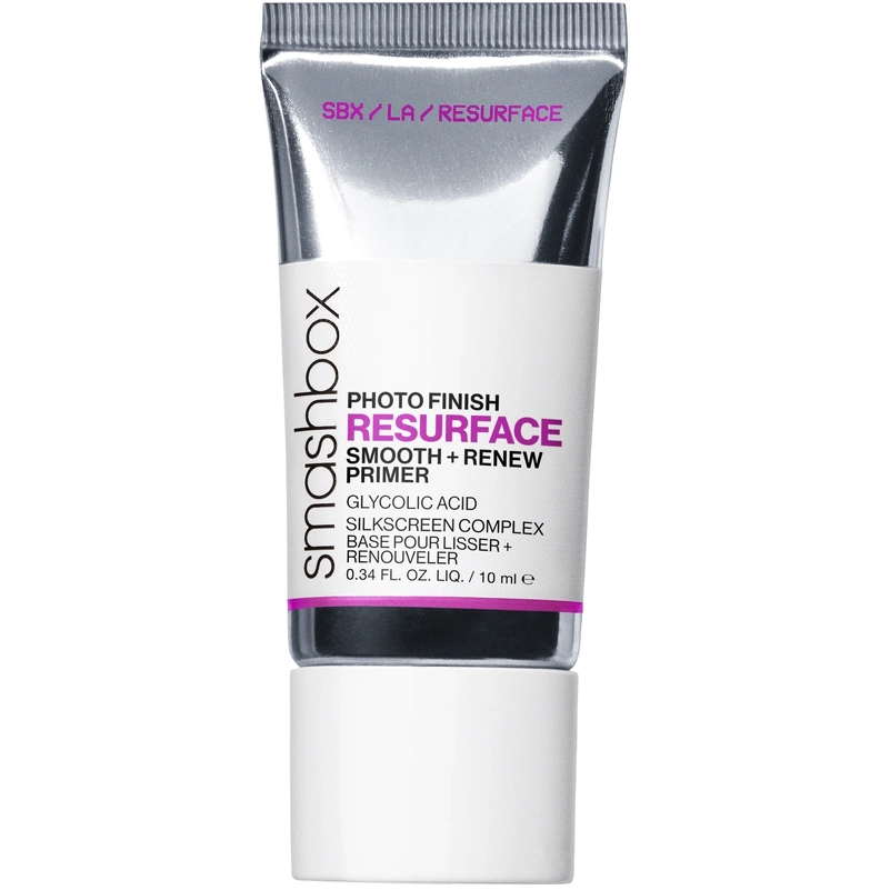 SmashBox Photo Finish Resurface Smooth + Renew Primer er en fantastisk primer. Beriget med 3,5% glykolsyre, arbejder denne luksuriøse primer på at forvandle din hud ved at øge cellefornyelsen, hvilket resulterer i en strålende glød og en jævnere hudstrukt, SmashBox Mini Photo Finish Resurface Smooth + Renew Primer 10 ml.