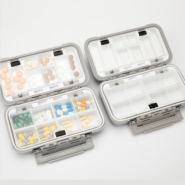 Holder dine daglige piller organiseret og er klar til brug når det er nødvendigt.. Funktioner. Multifunktionel pilleæske, gitteret er justerbart, du kan justere størrelsen, så den passer til dit brug.. Fjederlåg design. nem at bruge.. Vandtæt. Størrelse., Stor multifunktionel pilleæske.
