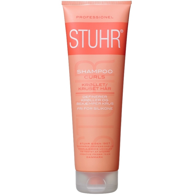 Stuhr Curls Shampoo er en lækker shampoo, som er specielt udviklet til dig der har krøllet, kruset eller genstridigt hår. Det er en mild silikonefri shampoo, som skånsomt renser dit hår med en let og behagelig skum, der samtidig nærer og blødgører håret., Stuhr Curls Shampoo 250 ml.