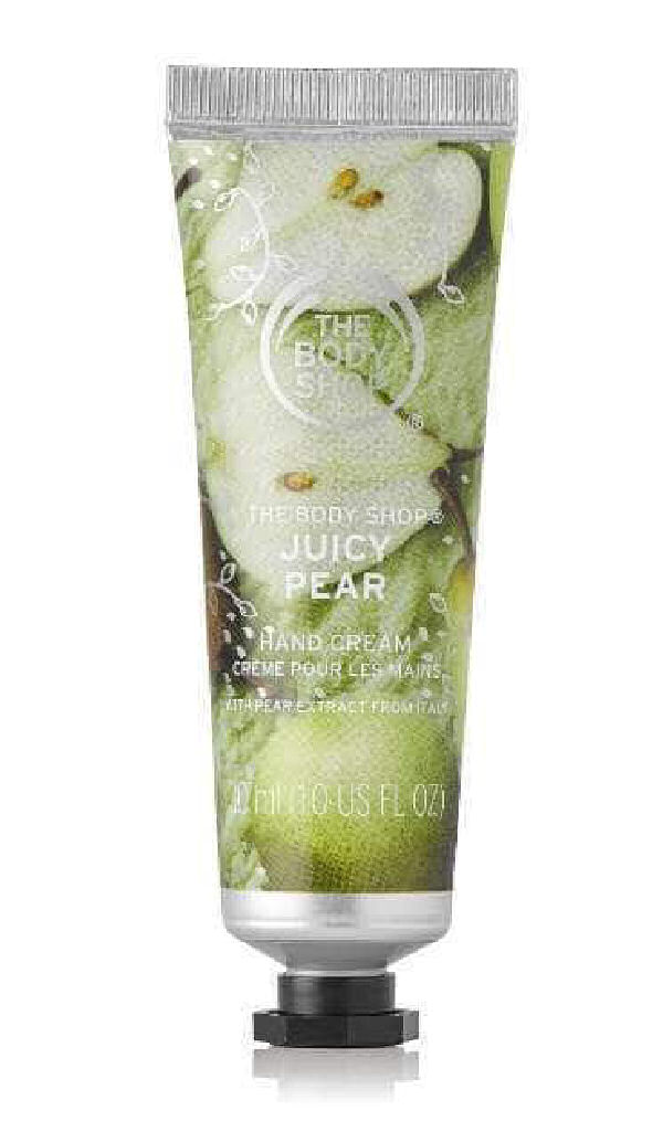 The body shop juicy pear hand cream 30ml Hold dine hænder i at føle dig godt og lugte som jul med den særlige udgave Juicy Pear Hand Cream. Det efterlader huden følelse blødere og smukt fugtet med et hit af vores strengt Juicy P