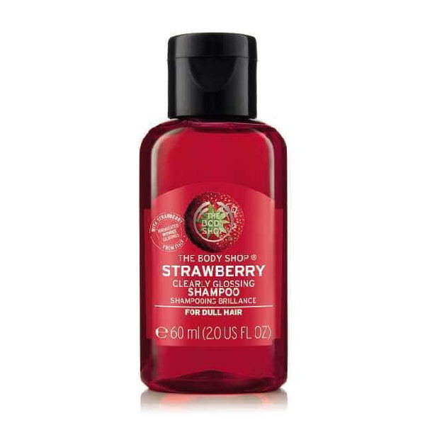 The body shop strawberry clearly glossing shampoo 60ml Giv næring trist hår med vores Strawberry Clearly Glossing Shampoo. Den er beriget med saftige, italienske jordbær og er fri for silikone. Den 100% veganske formulering tilføjer glans, modvirker