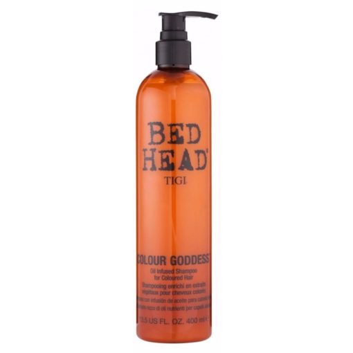 TIGI Bed Head Colour Goddess Oil Infused Shampoo er en shampoo, der er velegnet til farvet hår. Shampooen indeholder B5- og E-vitamin, som giver fugt, næring og vedligeholdelse af håret. Shampooen indeholder også mandelolie, kokosolie og keratin, som tilf, TIGI Bed Head Colour Goddess Oil Infused Shampoo 400 ml.