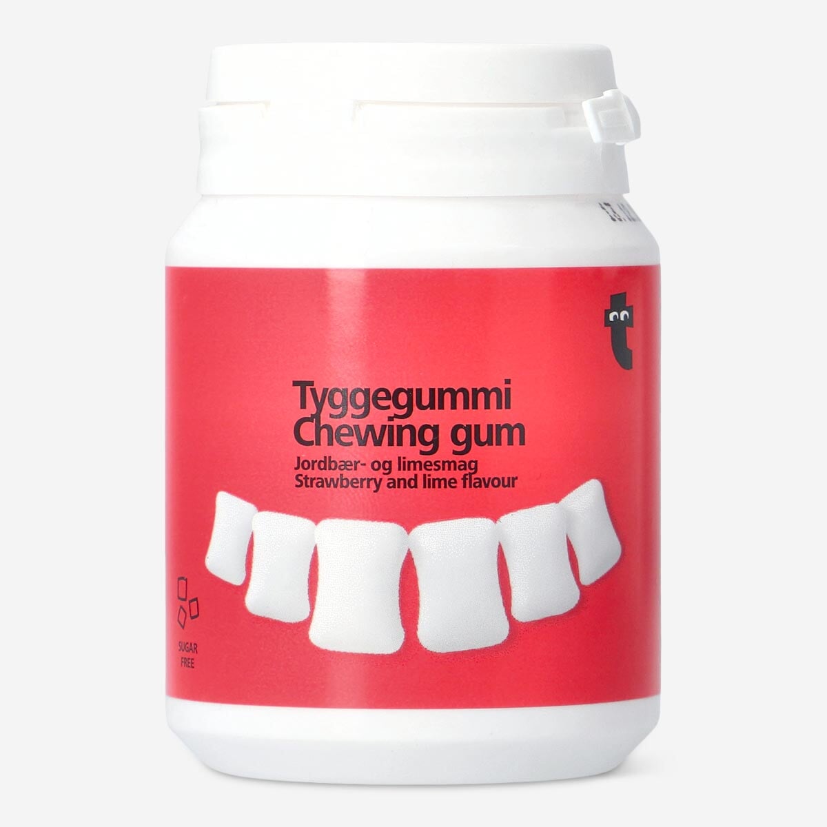 Tyggegummi er altid rart at have i nærheden for at få en frisk smag i munden, uanset om det er i tasken eller bilen, når man er på farten eller hjemme. Pakken indeholder 48 g sukkerfrit tyggegummi uden sukker med smag af jordbær og lime. Produktet er fremstillet med sødestoffer og indeholder aspartam (en kilde til phenylalanin). Vi sælger ikke fødevarer til Tyskland og Norge. Alle ingredienser kan findes nedenfor., Tyggegummi. Smag af jordbær og lime.