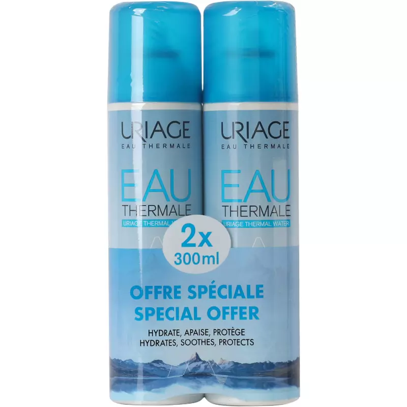 Uriage Thermal Water Spray er en multifunktionel kildevandsspray, som kan bruges både i ansigtet og på kroppen hos alle hudtyper i alle aldre. Den indeholder 100 % rent og naturligt termalsk kildevand fra de franske alper, der har en unik sammensætning af, Uriage Thermal Water Spray Duo Pack 2 x 300 ml.
