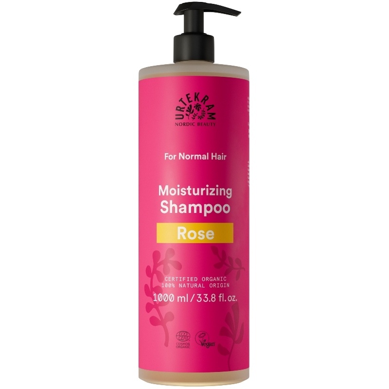 Urtekram Rose Shampoo er en god fugtgivende shampoo til et normalt hår. Den indeholder naturens egne fugtgivere, som er aloe vera og glycerin, der desuden har en plejende virkning. Håret efterlades rent, blødt, gennemfugtet, samt yderst velduftende, som t, Urtekram Rose Shampoo 1000 ml.