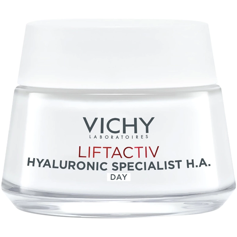 Vichy Liftactiv Hyaluronic Specialist H.A. Day Cream Dry Skin er en effektiv anti age-dagcreme velegnet til tør hud, der reducerer fine linjer, rynker, tab af fasthed og tegn på træthed. Formlen med aktive ingredienser, som ren hyaluronsyre, Cg-vitamin, n, Vichy Liftactiv Hyaluronic Specialist H.A. Day Cream Dry Skin 50 ml.