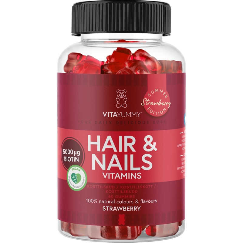 VitaYummy Hair & Nails Strawberry, Summer Edition 2024 60 Pieces (Limited Edition) fra VitaYummy