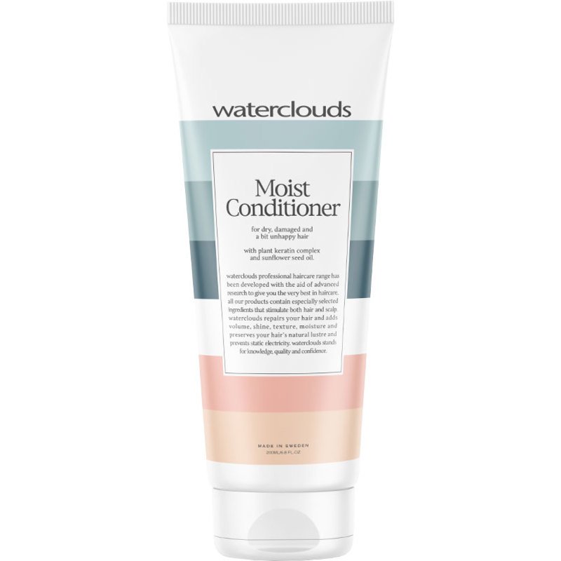 Waterclouds Moist Conditioner mild og fugtgivende conditioner til tørt og behandlet hår, der tilfører fugt og forhindrer håret i at tørre ud. Denne balsam består af et plantekeratinkompleks og solsikkefrøolie for at efterlade håret blødt og fleksibelt. Wa, Waterclouds Moist Conditioner 250 ml.