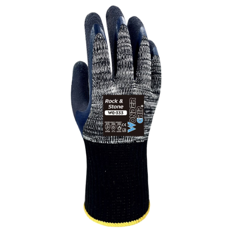 Mærke: Wonder Grip, Type: Arbejdshandsker, Farve: Grå, sort, Materiale: Bomuldspolyester, latex, Model: Rock & Stone, Model ID: WG-333, Størrelse: L, Vægt: 67,7 g, Gtin: 6959234407762,, Wonder Grip WG-333 Arbejdshandsker – L.